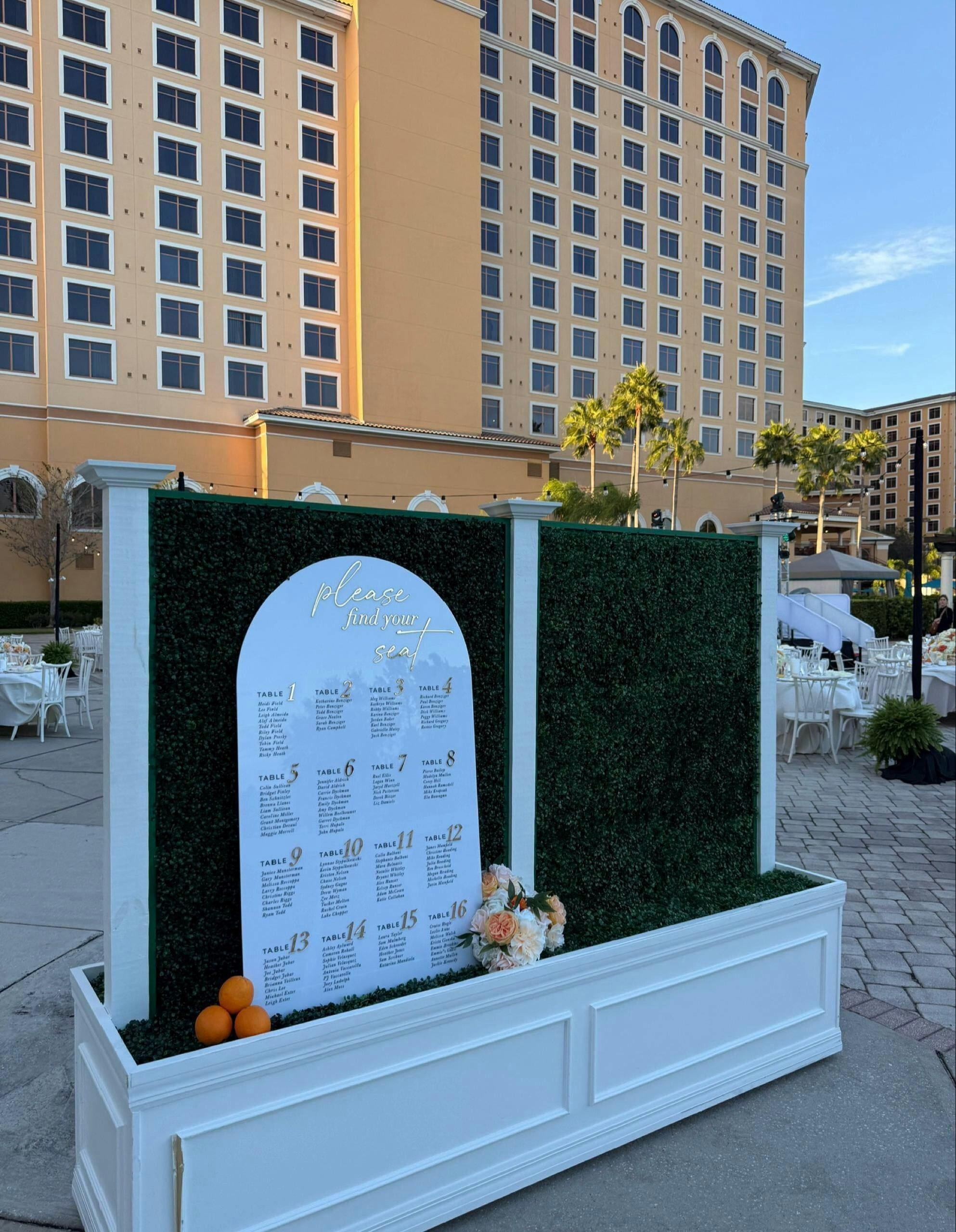 Custom Wedding Seating Chart Arch | White Acrylic & 3D Gold Mirror