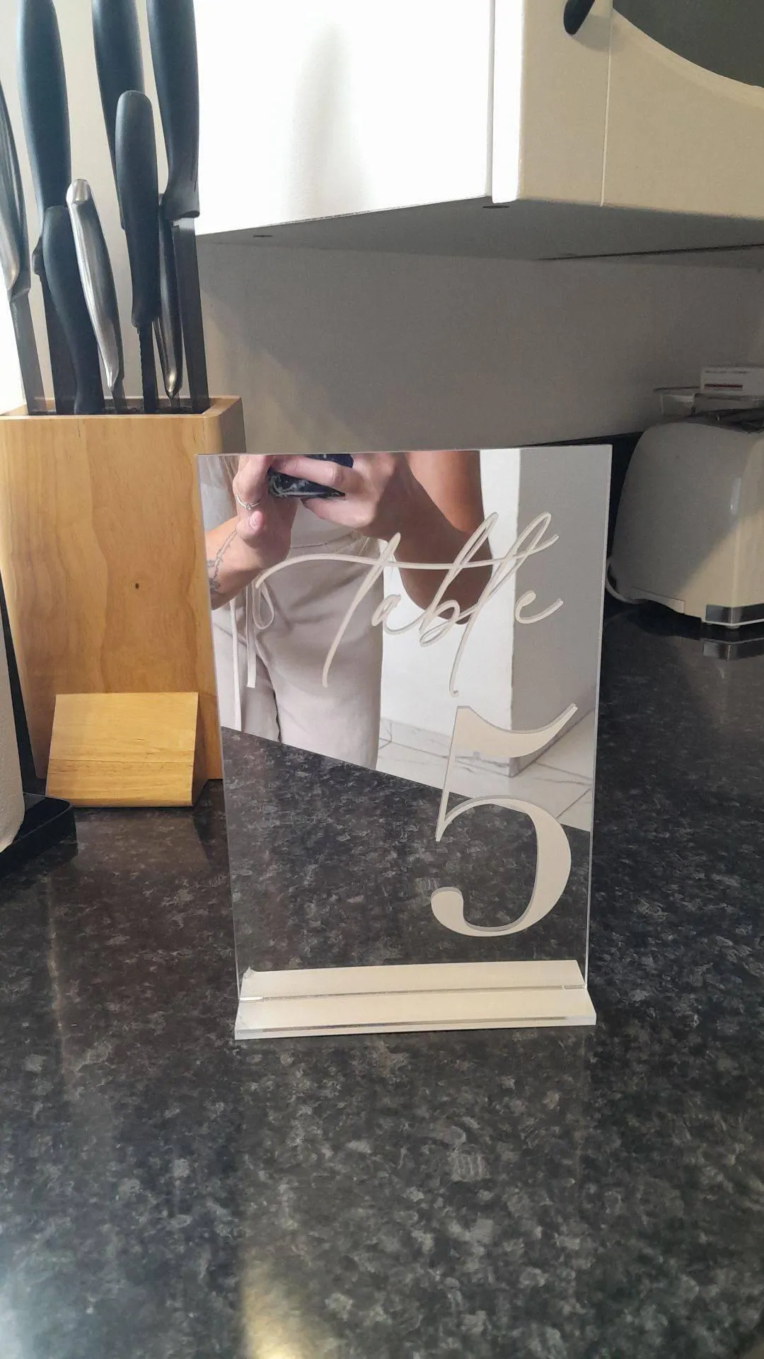 Elevate your wedding reception with these elegant silver mirror acrylic table numbers. Each table number features a stunning reflective finish that catches the light beautifully and comes with a matching silver mirror stand. Perfect for modern, minimalist, and contemporary wedding celebrations.