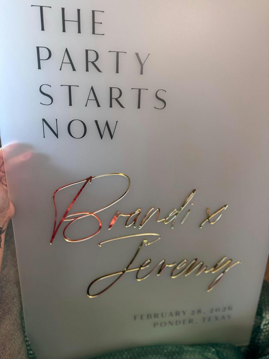 - Fully Personalized: We laser-cut your names in 3D Gold Mirror and permanently print your wedding date and venue below.